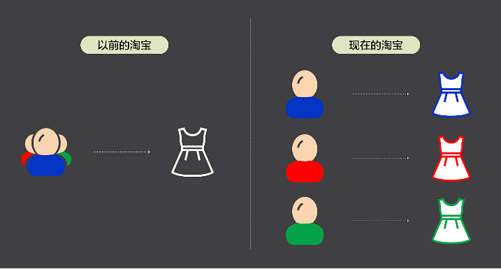 上图是之前的淘宝和现在的淘宝,在搜索逻辑上的区别,可以看出来之前的千人一面到现在的千人千面的变化,个性化算法导致我们在搜索产品的时候展现出不同的产品风格,款式,价格,地域等等,正是因为标签的差异化,最终呈现了展现的个性化,下面淘宝代运营来说说标签是一个怎么样的形成过程。